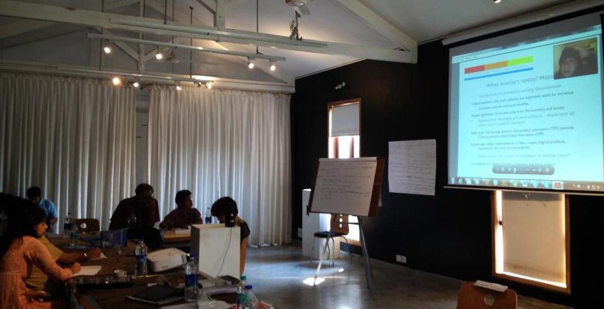 The course introduced new concepts and other ways of thinking that could be useful for participants in their study or daily practice in the cultural sector. The hypothesis on which the sessions drew upon is the growing awareness that a strong culture is necessary to have a strong economy. The course provided an international perspective while also highlighting the specifics of the Indian cultural context.